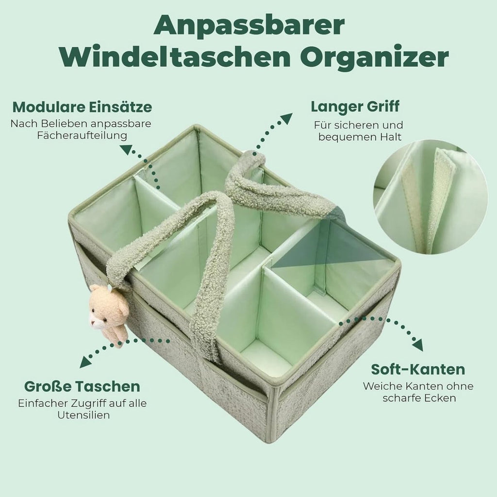 【Soft and Comfortable Fabric】Our baby storage basket uses high-quality plush fabric, which is soft and comfortable, durable and tear-resistant, better protecting the baby's essentials and diapers and is very convenient to use. 【Partition Design】 Portable Baby Storage Basket This perfect partition design makes optimal use of space and stores our baby's daily essentials in a clean and hygienic way. The dividers are removable, making cleaning easier. 【Practical and Beautiful】Our designer baby felt storage is beautiful, available in various colors, with multiple compartments for diapers, wet wipes, bottles, and other baby products. 【Multifunctional】 Baby Storage Basket It is very practical and multifunctional. It can hold not only baby products but also many small everyday items. It is sturdy and keeps you out of trouble. 【Easy to Carry】 Our portable baby storage basket measures 38 * 25.4 * 17 cm, fully utilizing the space and providing a clear overview at a glance. You can easily find baby essentials. The portable design is convenient and easy to carry, suitable for various occasions.